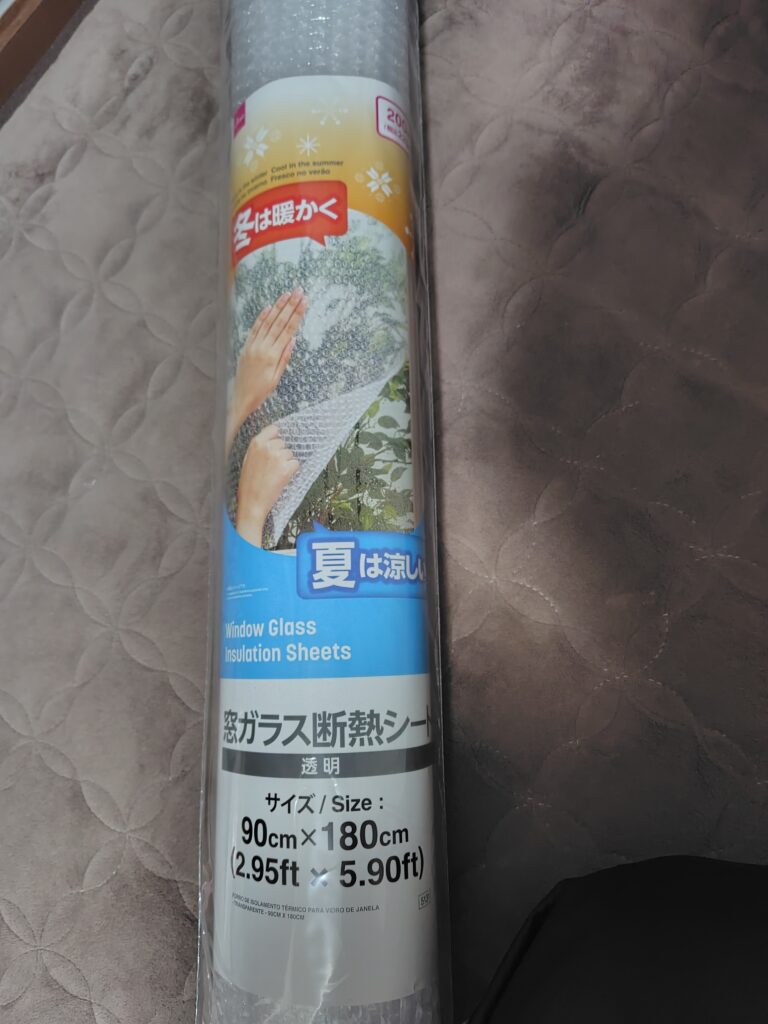 | 窓ガラス断熱シート | 900㎜ × 1800㎜ | ダイソー | 220円 |