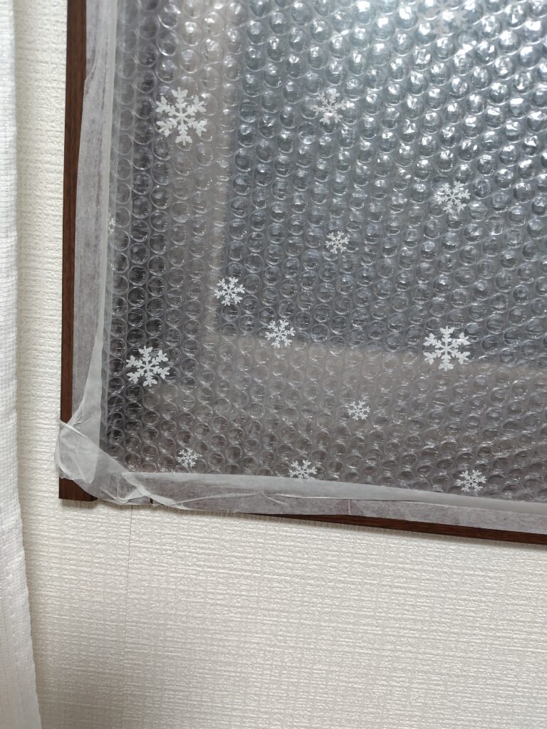 仮止めが終わったら、窓枠全体をマスキングテープで塞ぎます。