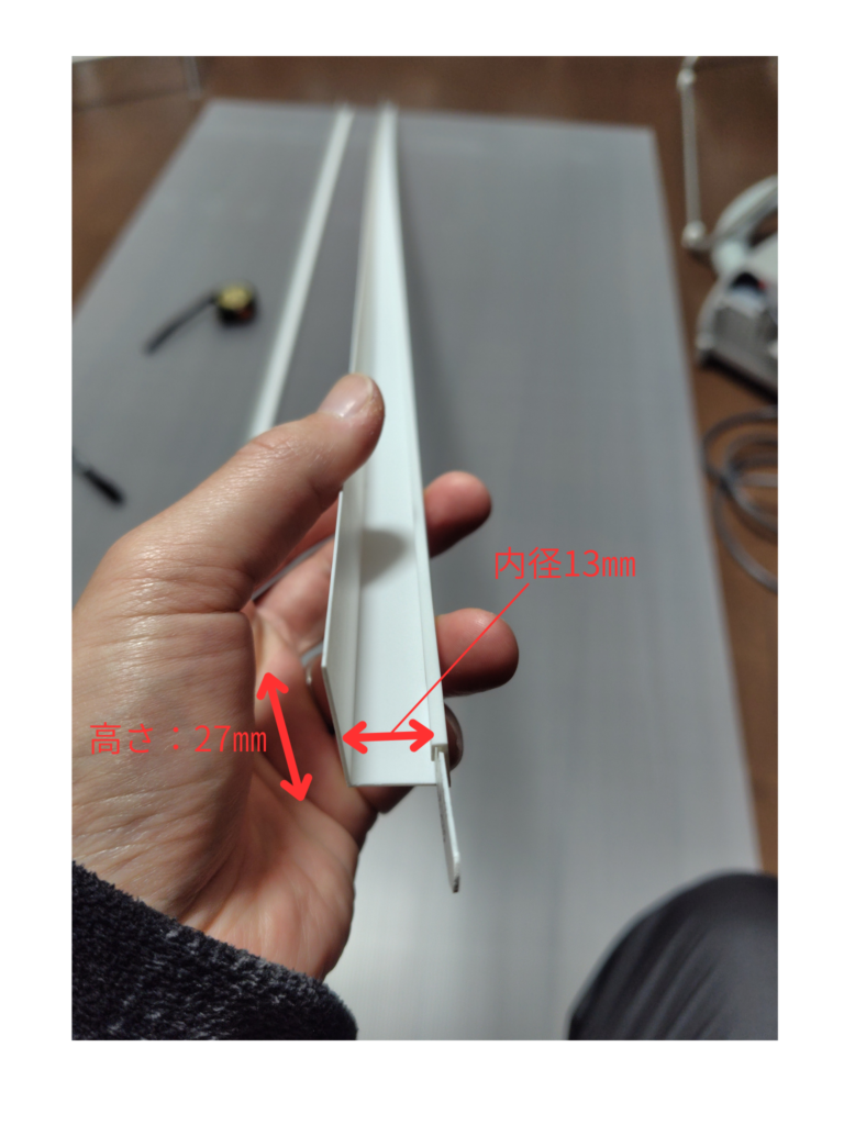 - 両面テープの上にレールとなる「見切り」を貼る。