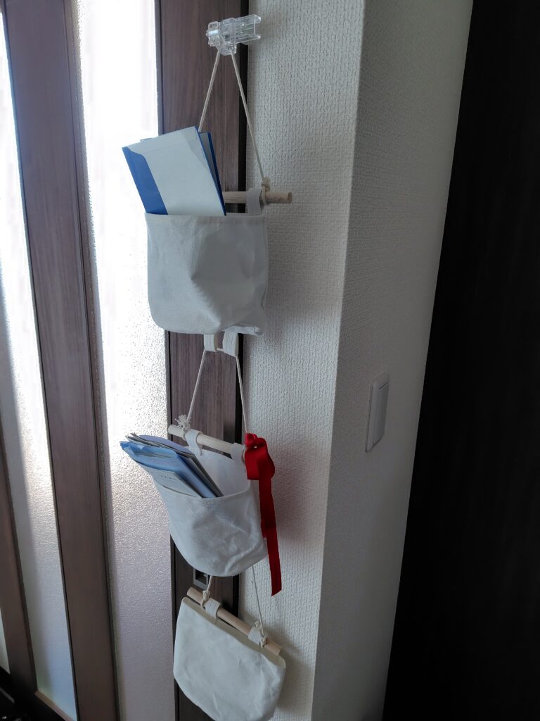 - ウォールポケットを吊り下げる。
