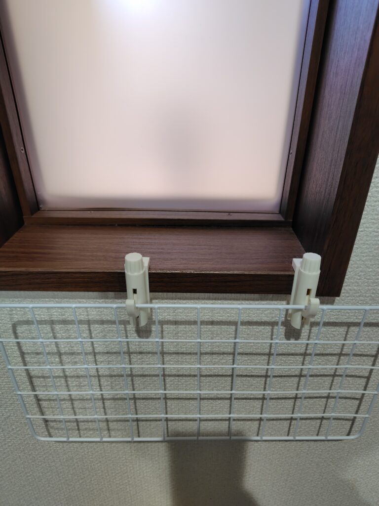 まずは窓枠など、取り付けたい位置にかもいフックをしっかり固定し、ワイヤーネットを吊るします。