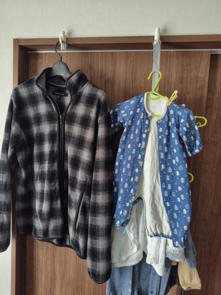 洗濯物だけでなく、部屋着を吊るせばすぐさま着替えられて時短になります。